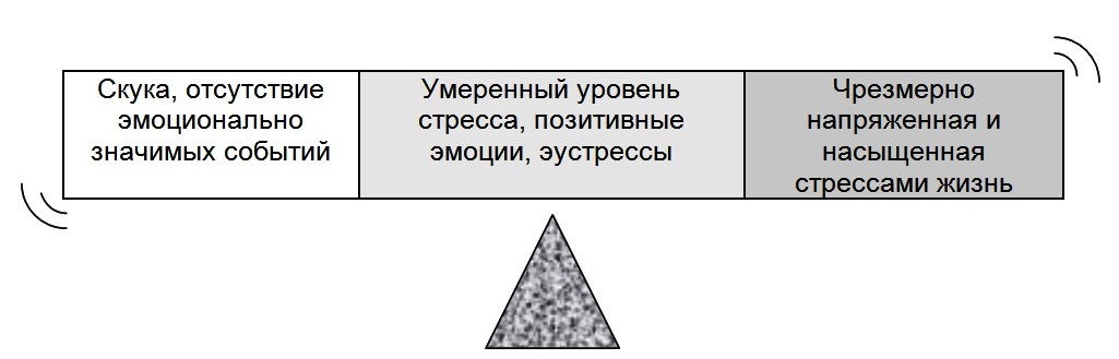 Другая сторона нашей жизни, где тоже важно найти точку баланса – это стрессы в нашей жизни. Ученые выяснили, что не только стрессы пагубно влияют на наш организм, но и их отсутствие, которые в народе называют скукой, серостью жизни, рутиной, отсутствием ярких впечатлений и т.д. Запомните, что наш мозг питается эмоциями, которые являются «психологической валютой» нашей жизни, и если ваша жизнь столь предсказуема и однообразна, что эмоций не хватает — вы будете испытывать неудовлетворенность и душевную пустоту.